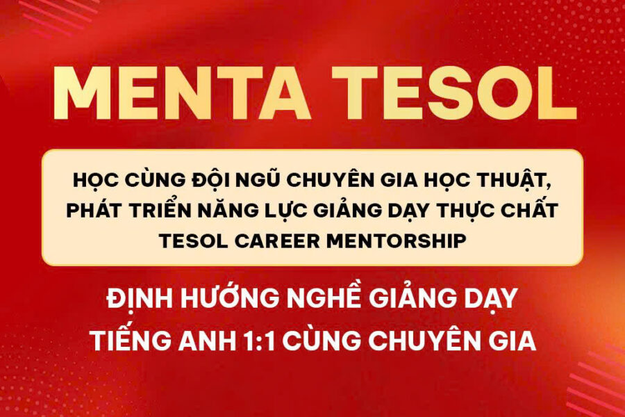 MENTA TESOL – HỌC CÙNG ĐỘI NGŨ CHUYÊN GIA HỌC THUẬT, PHÁT TRIỂN NĂNG LỰC GIẢNG DẠY THỰC CHẤTTESOL CAREER MENTORSHIP – ĐỊNH HƯỚNG NGHỀ GIẢNG DẠY TIẾNG ANH 1:1 CÙNG CHUYÊN GIA